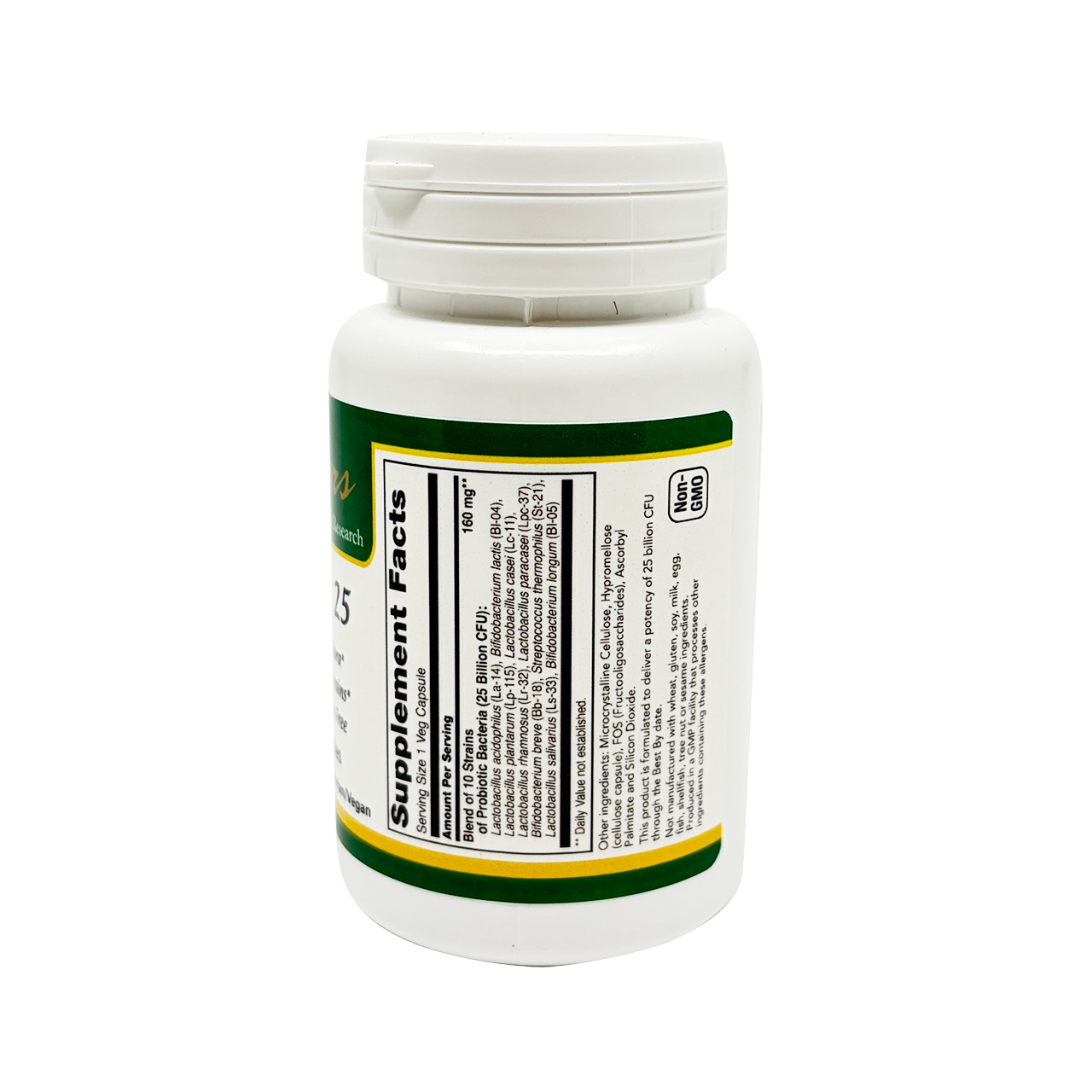 Probiotic 25は、消化器系と免疫機能をサポートするために設計された高品質プロバイオティクスサプリメントです。1錠あたり10種類の乳酸菌・ビフィズス菌、 合計250億CFU(生菌数)を配合し、善玉菌のバランスを整え、健やかな腸内環境を維持するのに役立ちます。